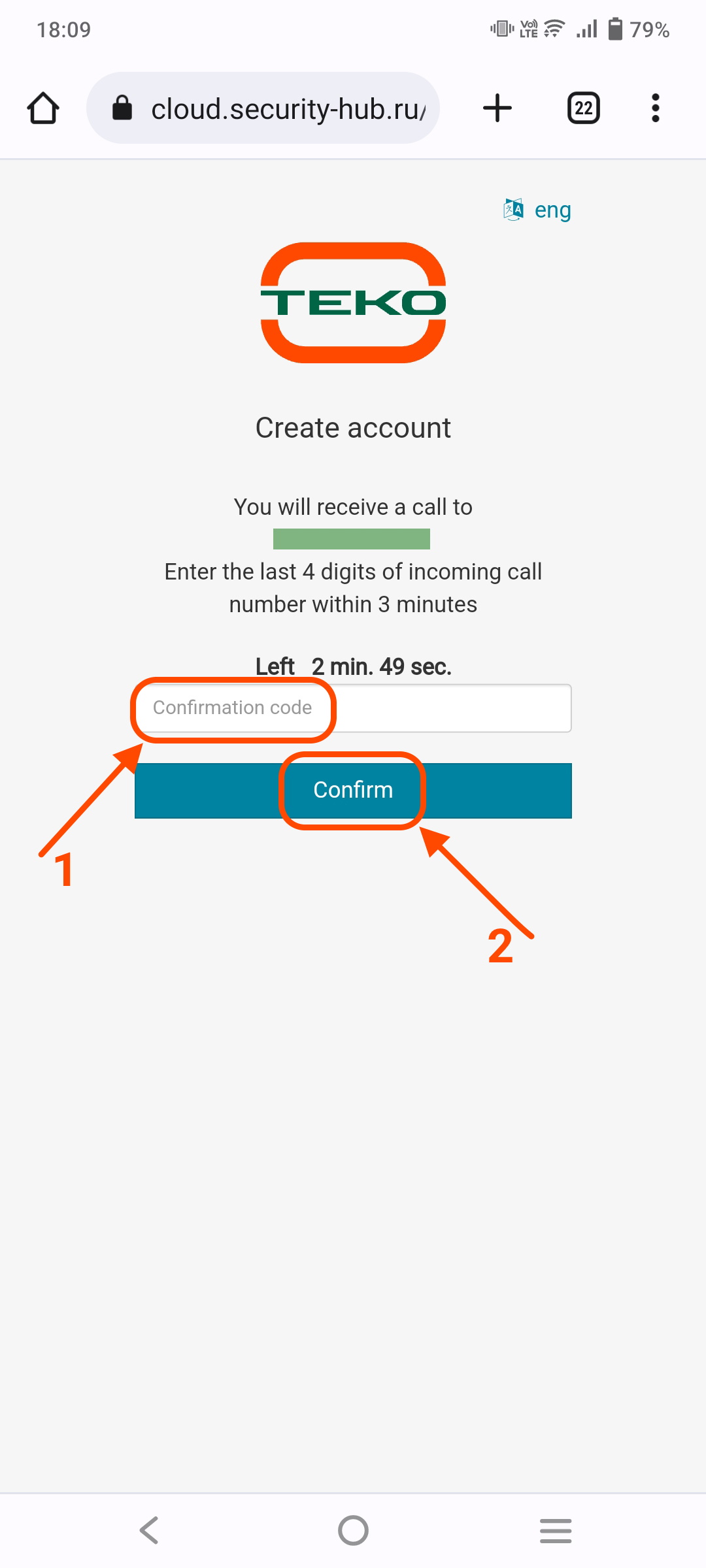 8. In the next window, enter the "Confirmation Code" (the last 4 digits of the incoming phone number) and click the "Confirm" button (fig. 7)