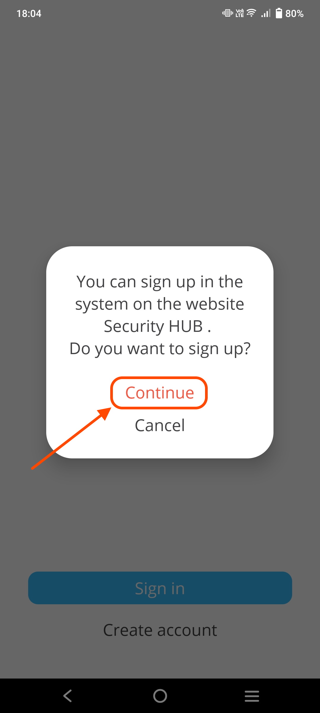 6. If you don't have an account yet, you should sign in. By selecting "Create account" (Fig. 4) and "Continue" (fig. 5), you will be redirected to the site cloud.security-hub.ru/# (fig. 6).