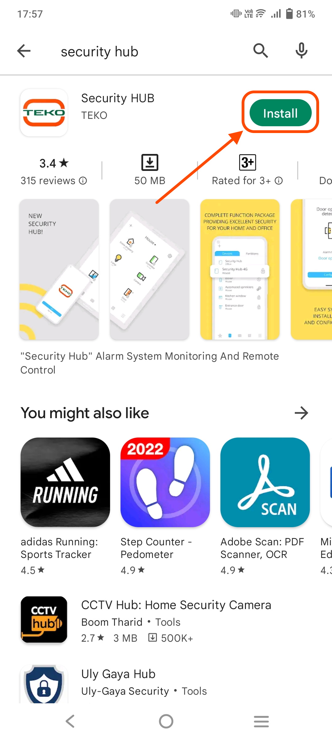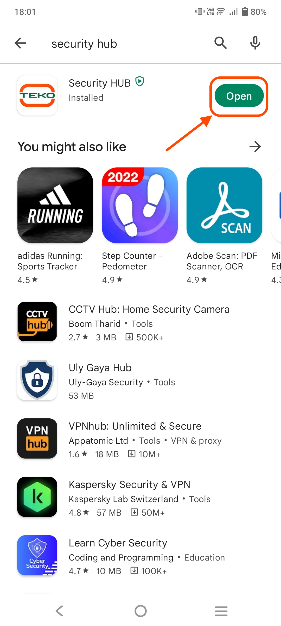 1. Download the application, to do this, go to Google Play and type Security Hub in the search or follow the link: https://play.google.com/store/apps/details?id=public.shub&hl=en (fig.1).