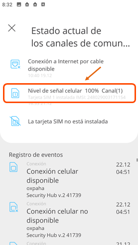Identificación de las tarjeta(s) SIM en la aplicación del Security hub: |