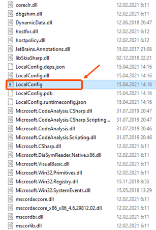 1. Ejecute el archivo LocalConfig.exe