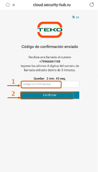 8. En la siguiente ventana, ingrese el "Código de confirmación" (los últimos 4 dígitos del número de teléfono entrante) y haga clic en el botón "Confirmar" (Fig. 7)