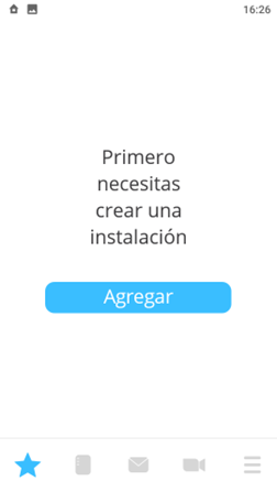 13. En hora buena, has entrado en la aplicación móvil. Si todavía no hay dispositivos en su dominio, la pantalla principal le indicará “Primero necesitas crear una instalación" (Fig. 12)