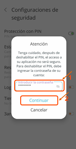 Introduzca la contraseña de su cuenta y presione “Continuar” |