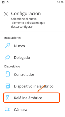 Seleccione “Relé inalámbrico" |