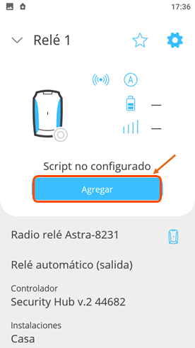 Registro del relé Astra 8231 y Astra-8731 en la aplicación movil de Android / iOS