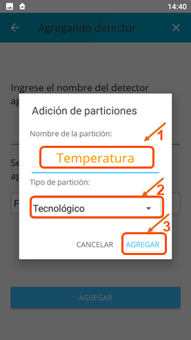 | Ingrese un nombre, seleccione la partición o agregue una nueva partición. | Ingrese un nombre para la partición, seleccione el tipo “Técnologico” y presione “Agregar” | Presione “Agregar” |