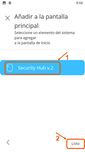 Seleccione “Security Hub” y presione “Listo” |