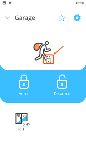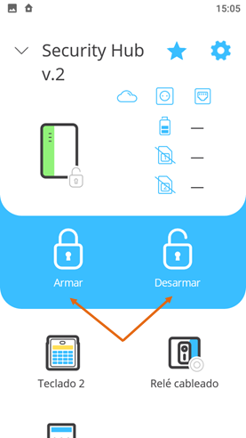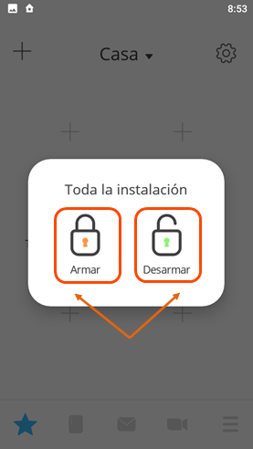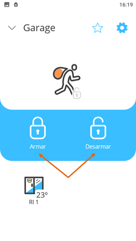 Vista de la pantalla principal con diferentes tipos de widgets para Armar / Desarmar: