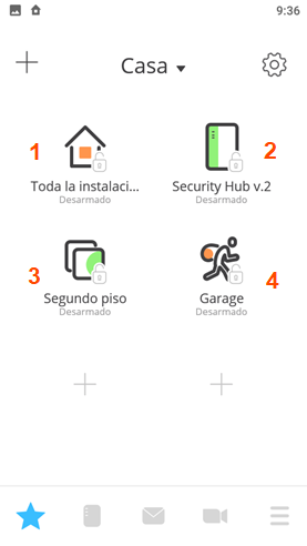 Armar y desarmar una instalación (particiones) a través de la aplicación “Security hub”