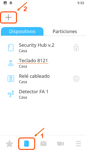 Una vez registrado el teclado, en la pantalla de dispositivos realice un clic en el ícono "+" |