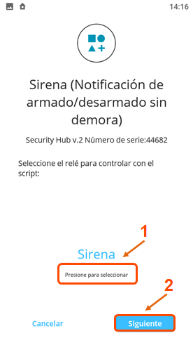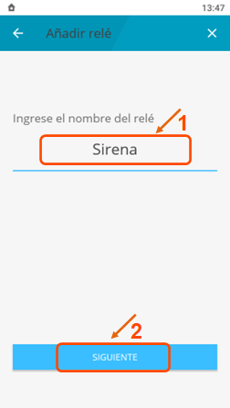 Seleccione el relé y presione en “Siguiente" |
