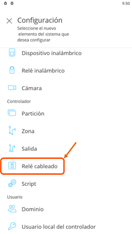 Presione en “Relé Cableado" |
