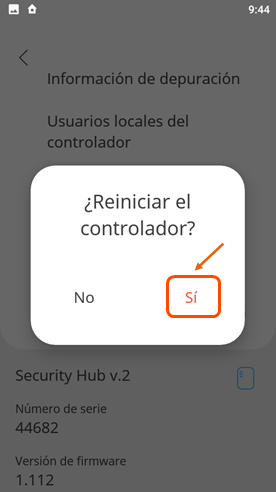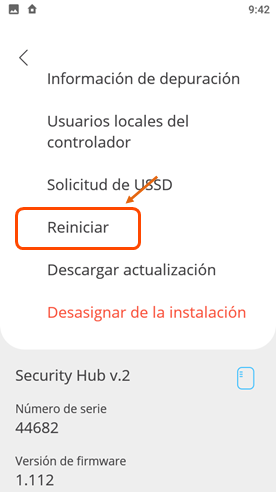 Reinicio del controlador mediante la aplicación movil “Security Hub”