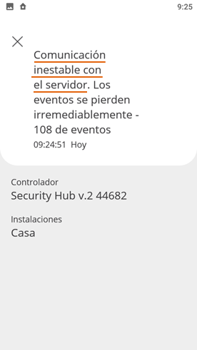 Notificación “Comunicación inestable con el servidor” en la aplicación Security Hub (Fig. 1, Fig. 2)
