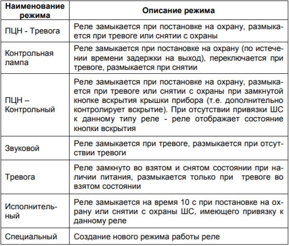 Режимы работы реле ППКОП Астра-712/Х