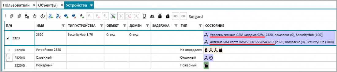 Отображение в МП «Security Hub» устройства, подключенного по беспроводному каналу через SIM.
