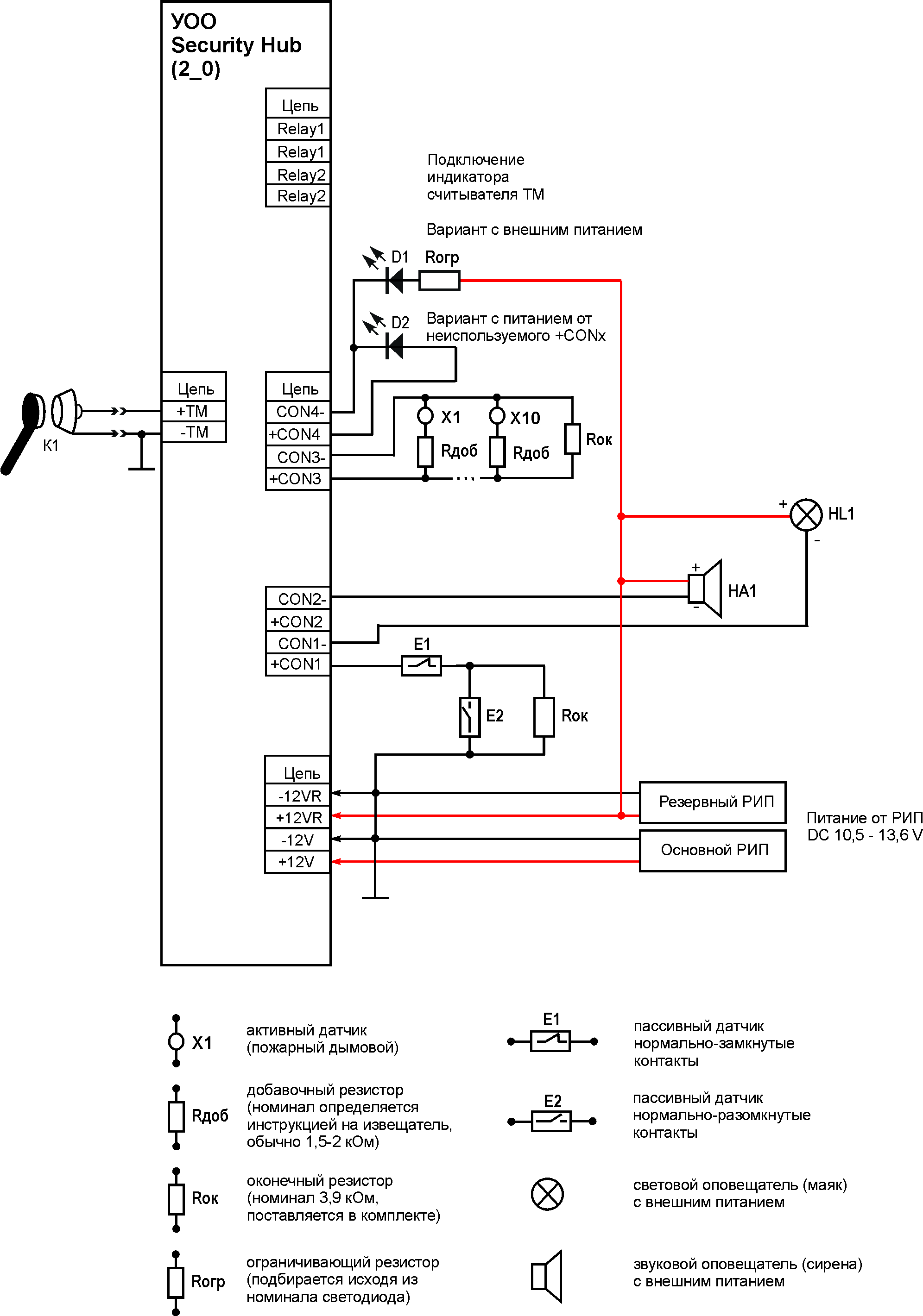 Security Hub 2.0 Схемы проводных подключений
