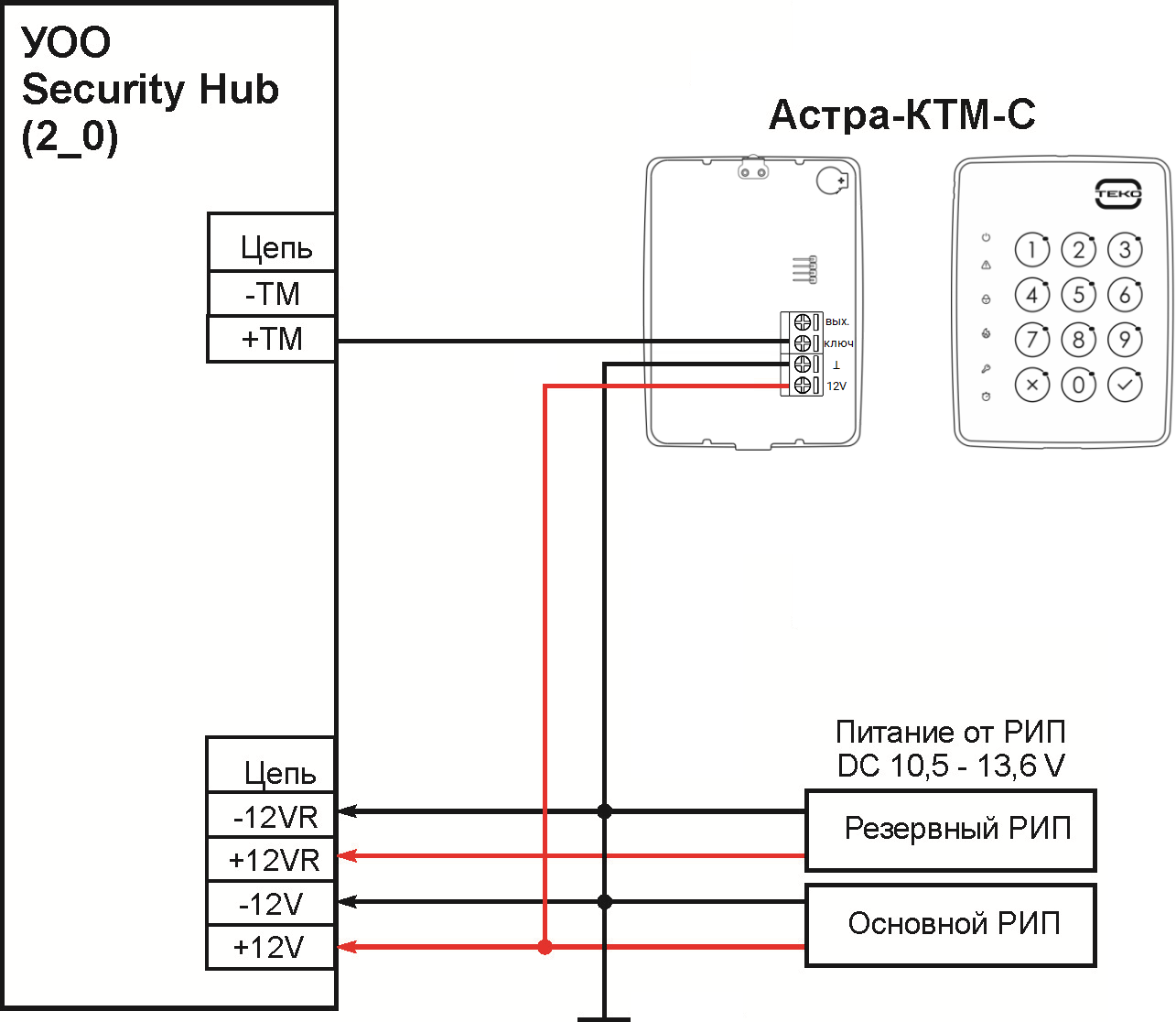 Подключение клавиатуры-эмулятора ключей ТМ Астра-КТМ-С