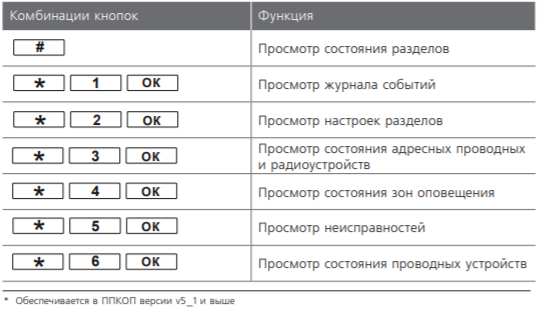 Кнопки быстрого доступа: Состояние разделов, журнал событий, настройки разделов, состояния адресных устройств, зоны оповещения, состояния проводных устройств.
