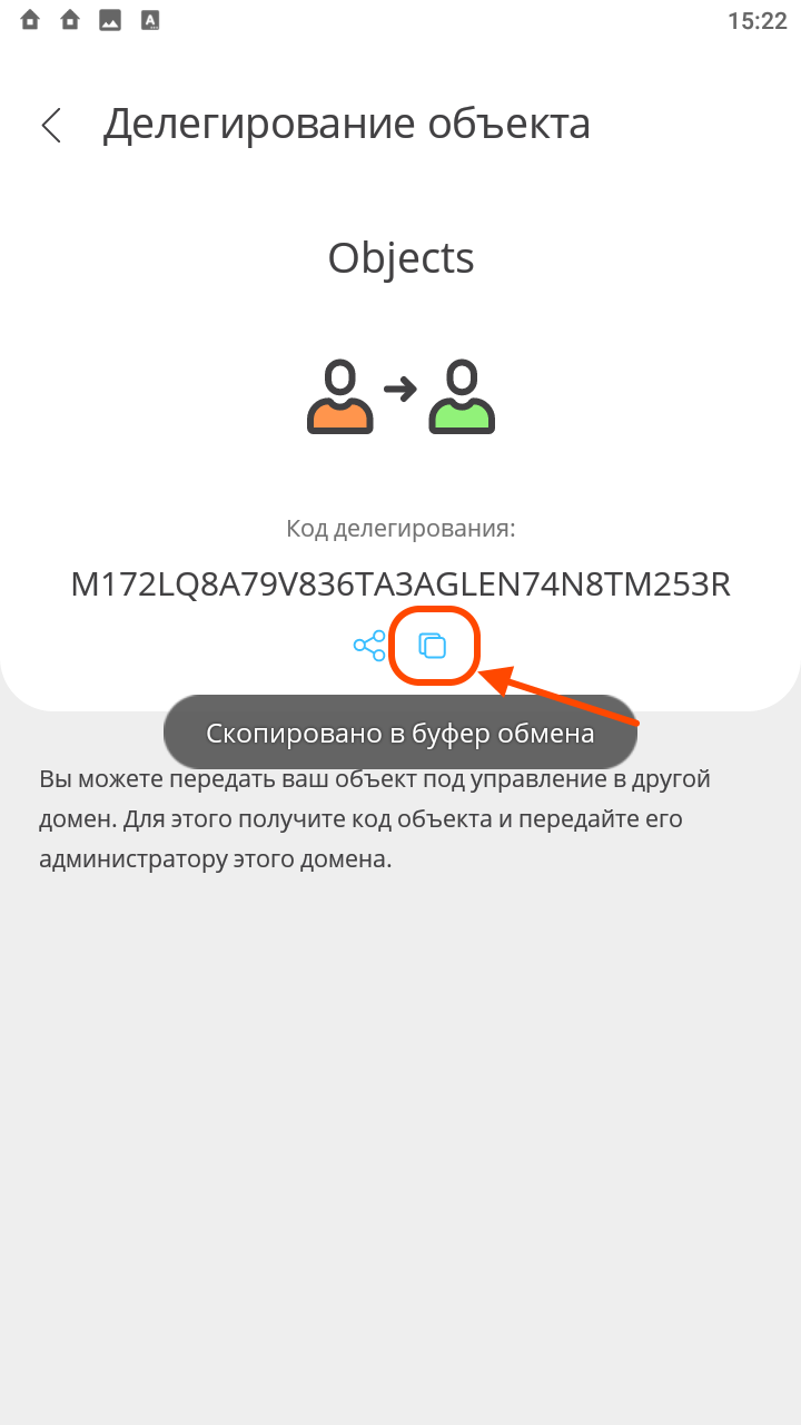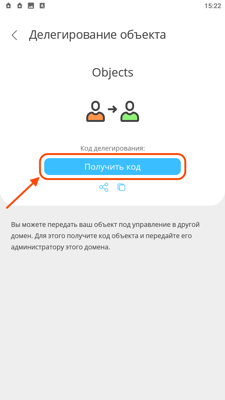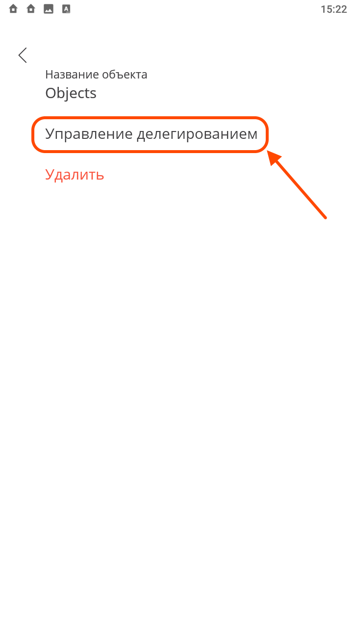 1. Зайдите в мобильное приложение объекта который хотите делегировать;