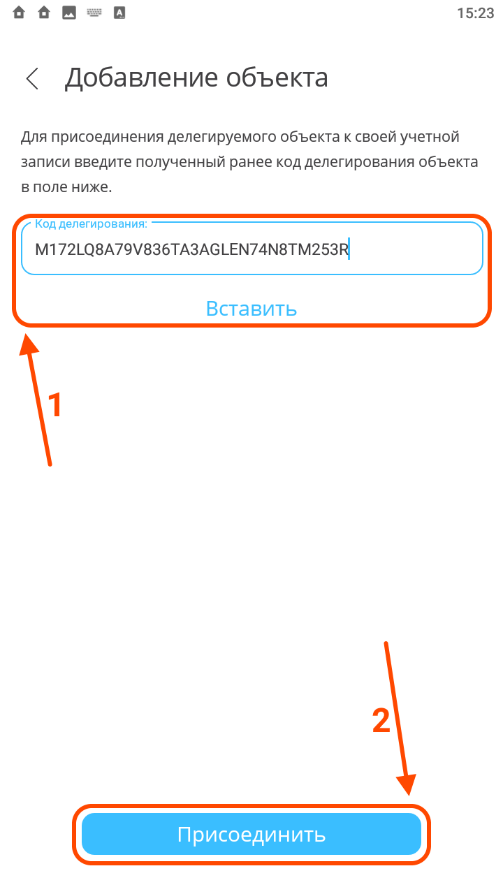 - Для принятия делегирования откройте мобильное приложение с учетной записью куда ходите добавить объект;
