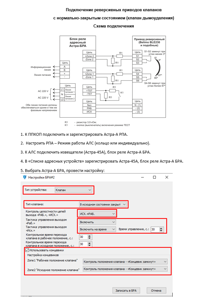 Подключение и настройка реверсивных приводов клапанов с нормально-закрытым состоянием (клапан дымоудаления).