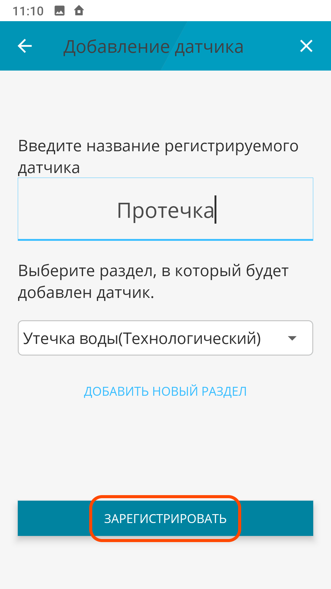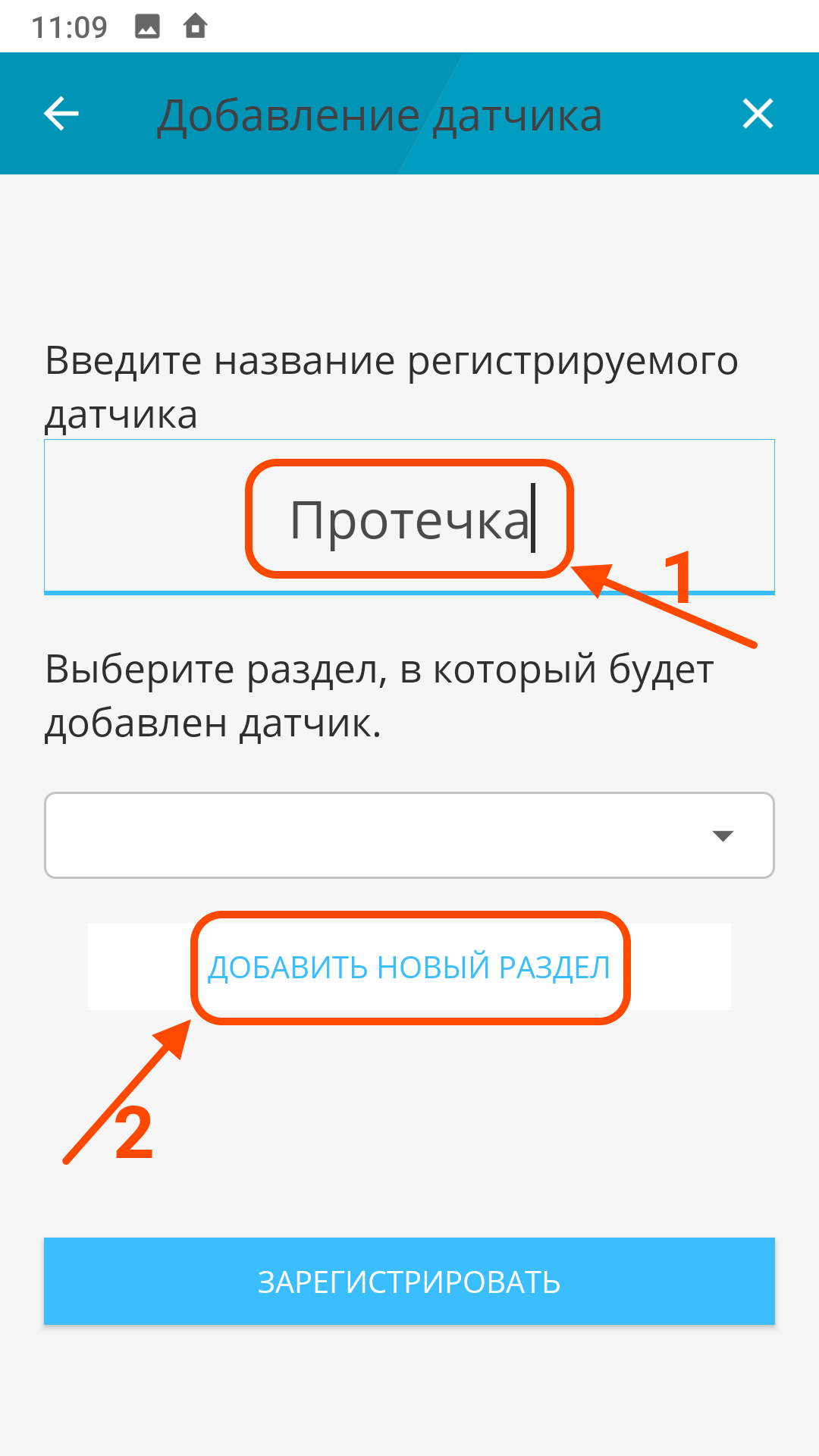 | Нажмите "Зарегистрировать" | Завершите добавление датчика | |