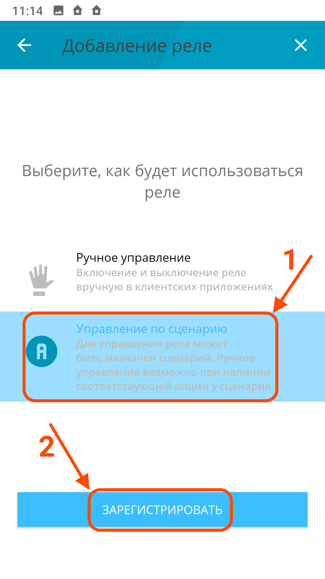 | Придумайте название для реле | Выберите "Управление по сценарию" | Завершите добавление радиореле |
