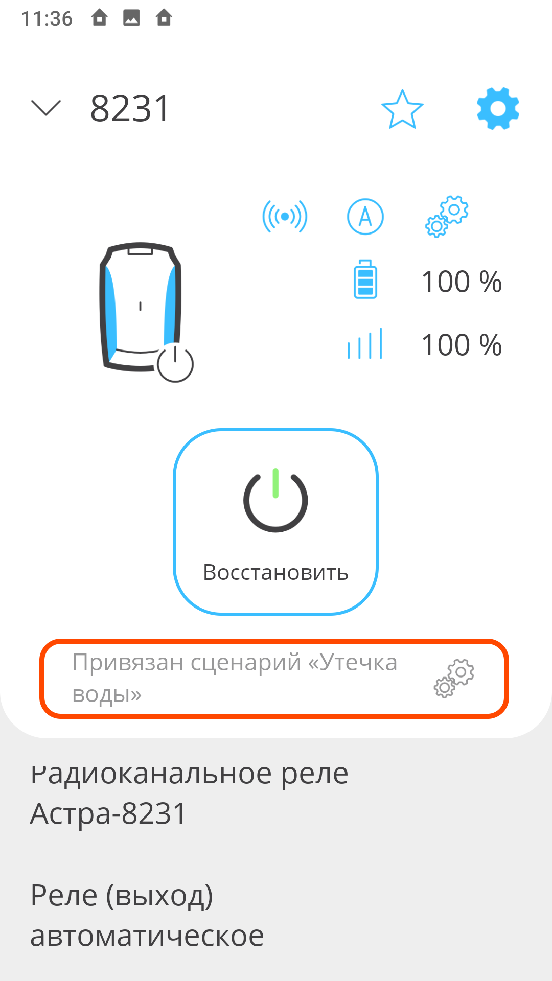 2 этап. Добавление беспроводного реле Астра-8231 с управлением по сценарию