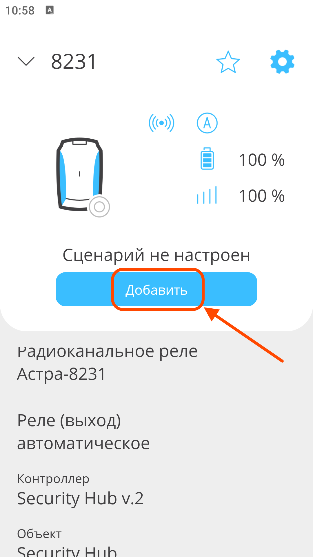Добавим беспроводное реле Астра-8231 по аналогии руководства описанного по ссылке (https://teko.helpdeskeddy.com/ru/knowledge_base/article/550/category/50/) выбирая тактику "Управление по сценарию".