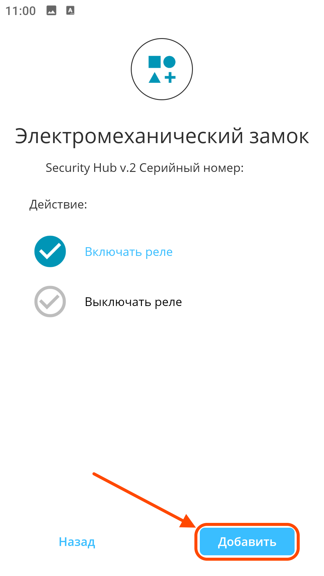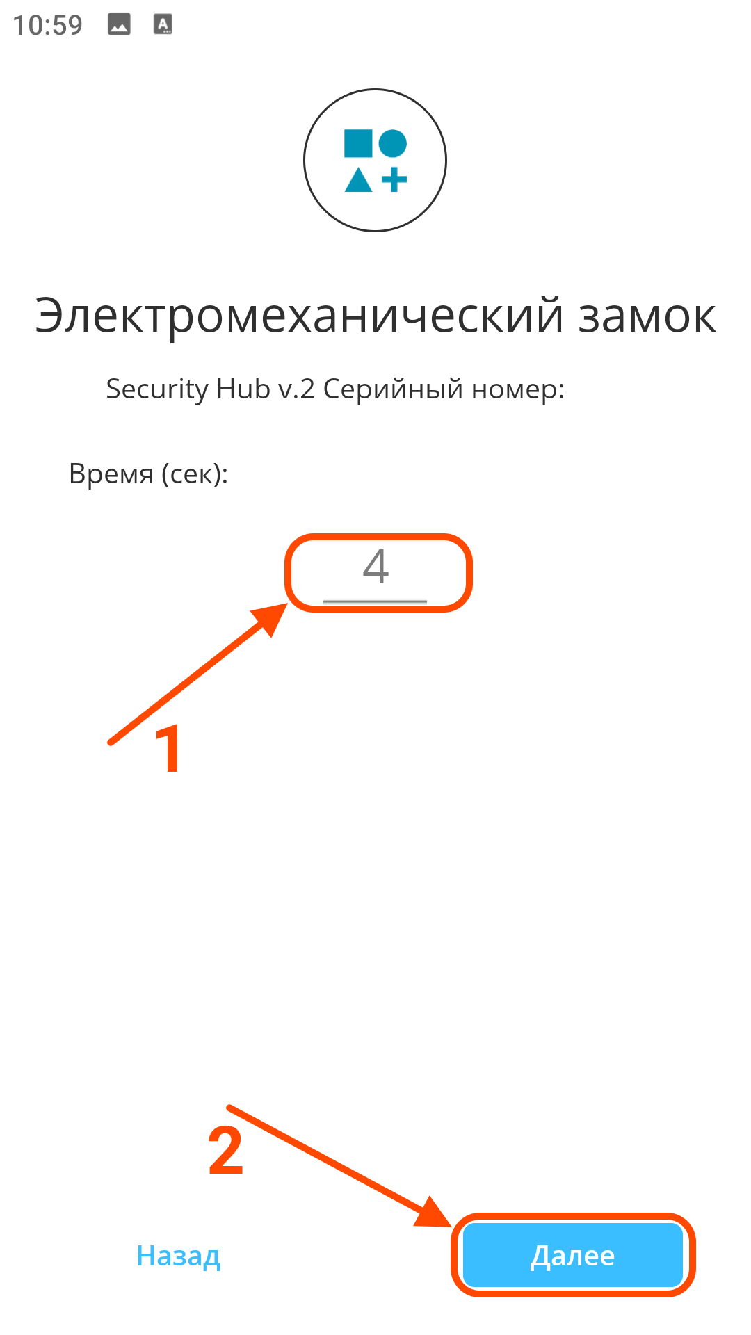 | Изучите принцип работы, нажмите "Добавить" если согласны | Нажмите "Далее" | Введите время отпирания в секундах, нажмите "Далее" |