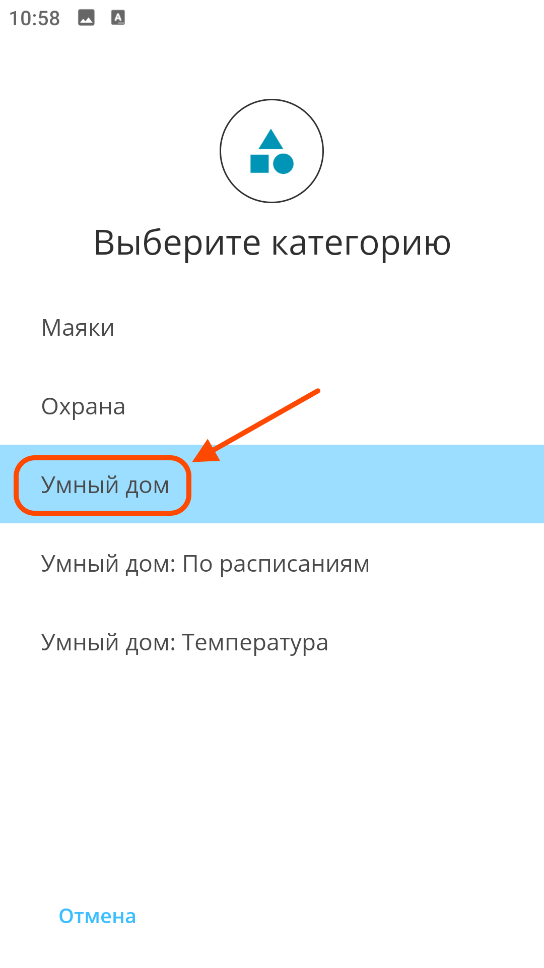 | Находясь в устройстве нажмите "Добавить" сценарий | Выберите категорию "Умный дом" | Сценарий "Электромеханический замок" |