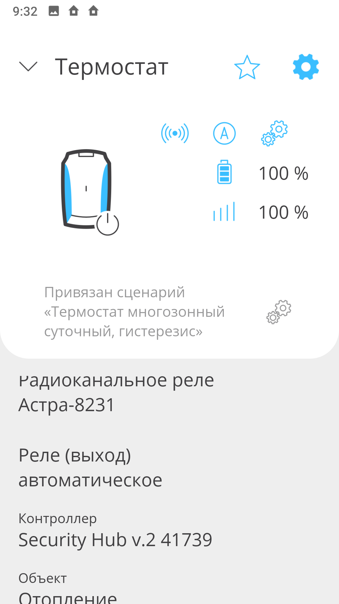 | Установите желаемую температуру в остальное время | После удачной привязки сценария реле имеет вид | |