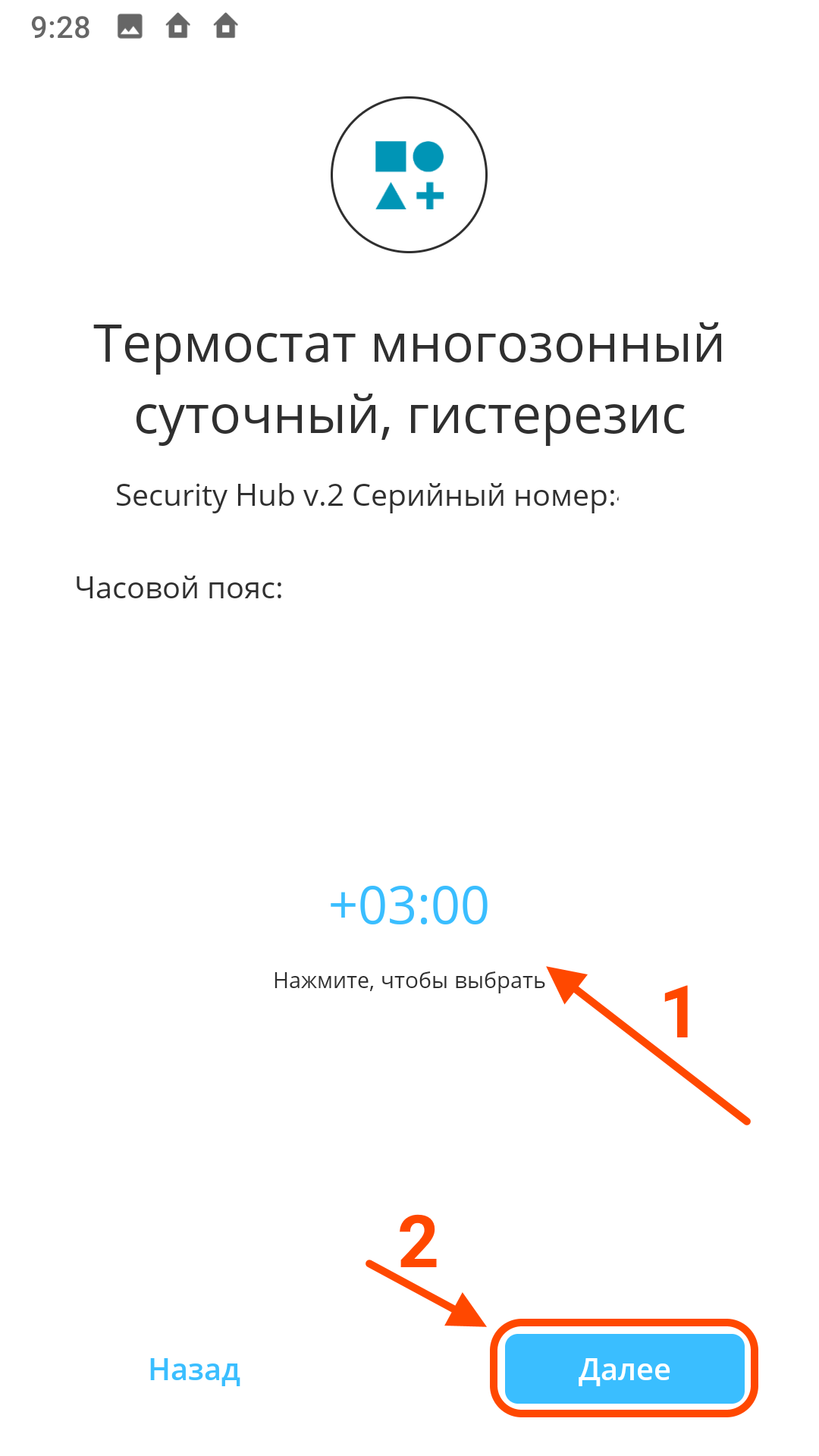 | Изучите режим работы сценария и нажмите кнопку "Добавить" | Нажмите кнопку "Далее" | Выберите часовой пояс вашего региона и нажмите "Далее" |