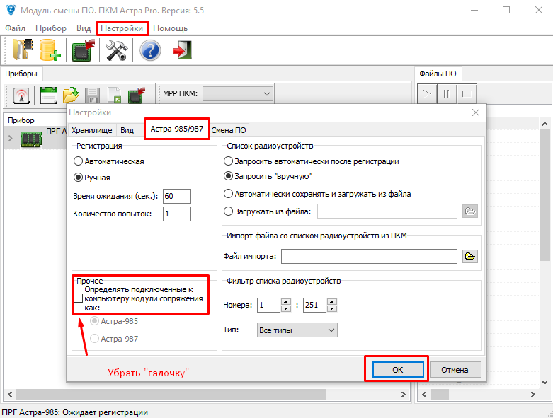 Почему Астра-984 в "Модуле смены ПО" отображается, как Астра-985?
