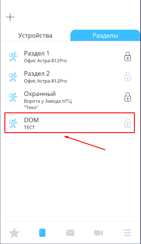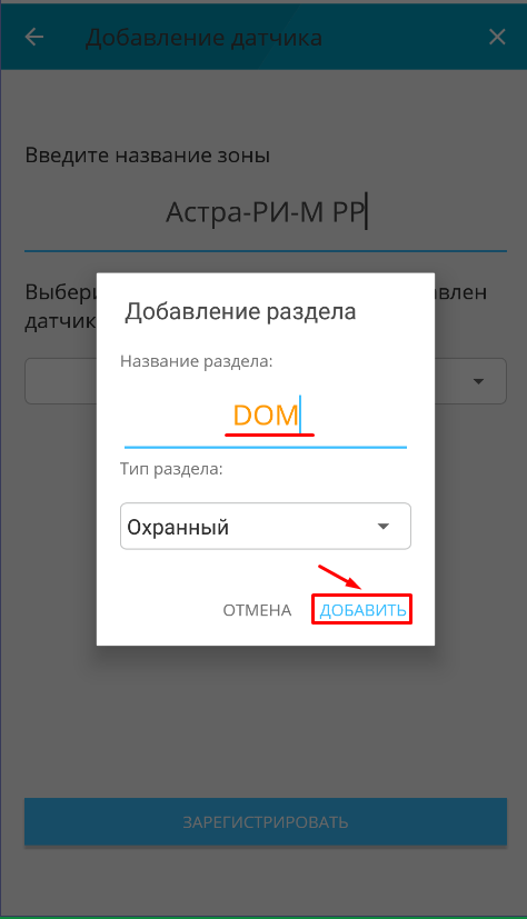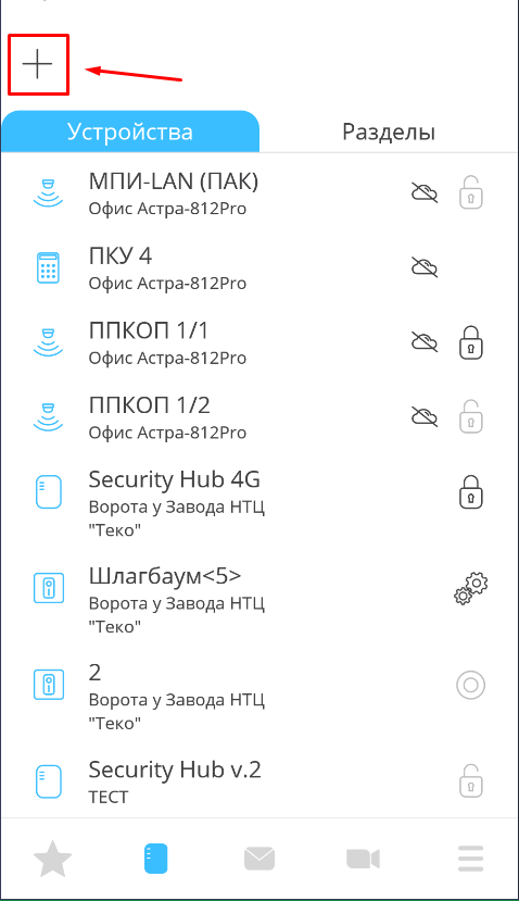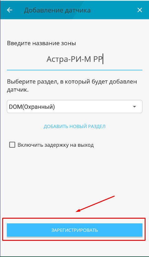 При успешной регистрации извещатель (Астра-5121 - ИК) отобразится в меню "Оборудование"