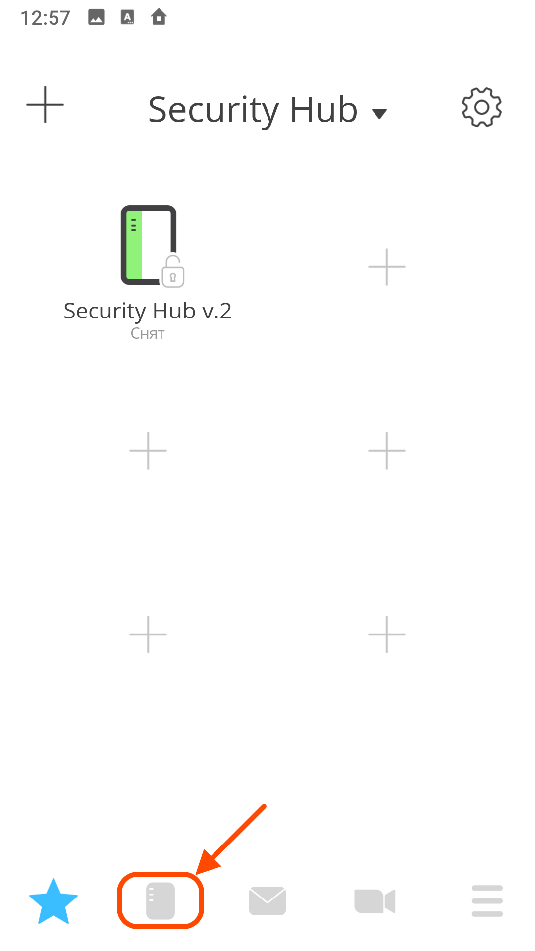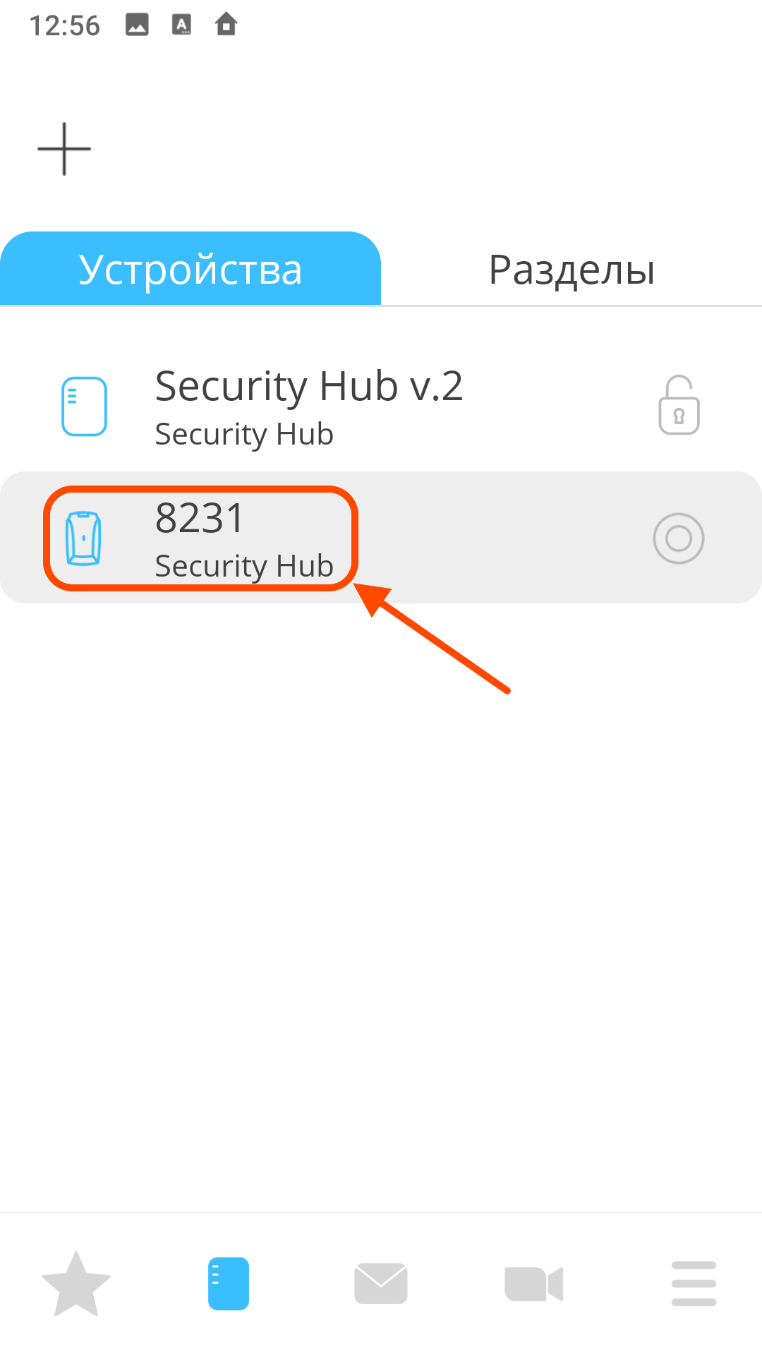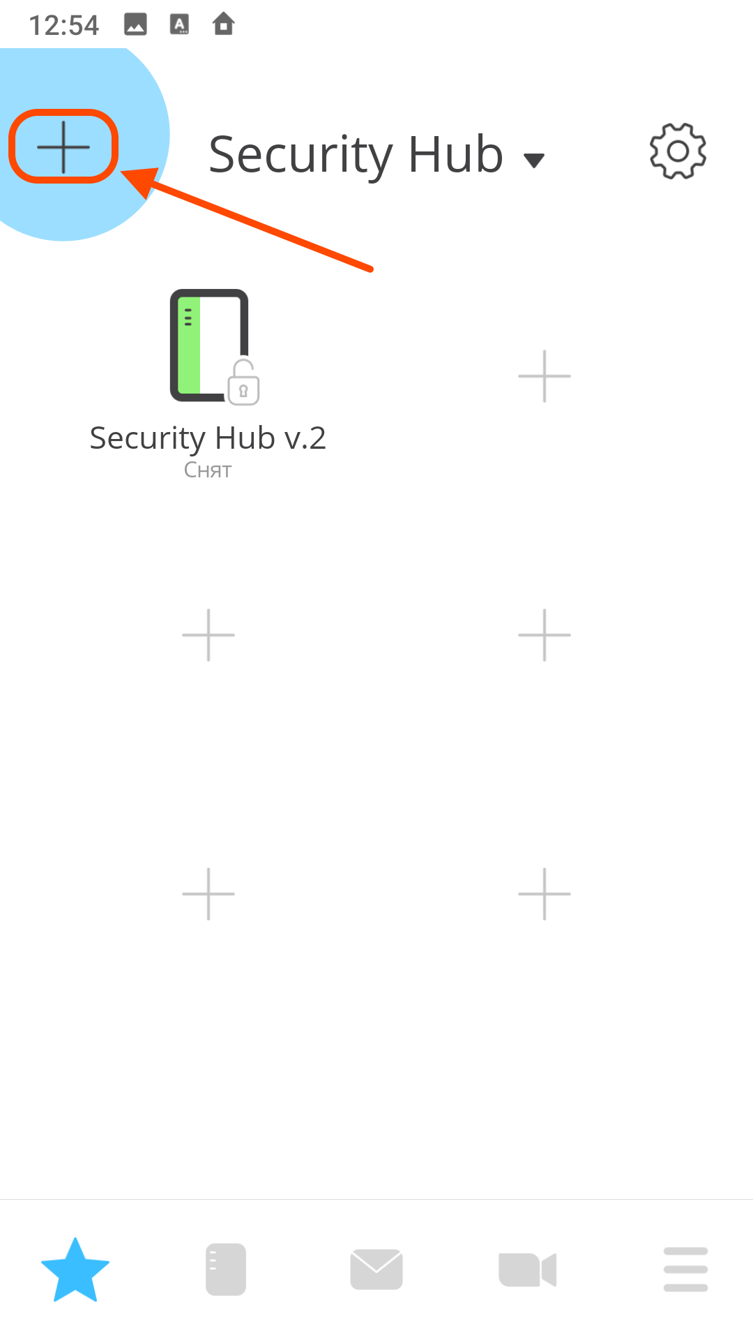| На главном экране Нажмите "+" в верхнем левом углу экрана | В меню "Настройка" выберите элемент "РК реле" | Выберите программируемый контроллер Security Hub |