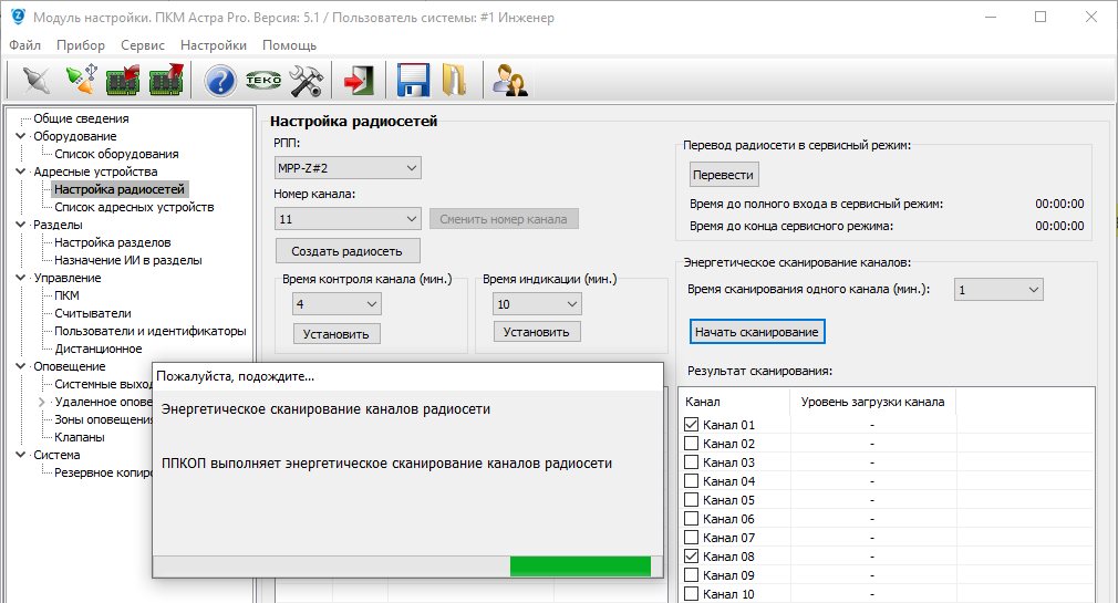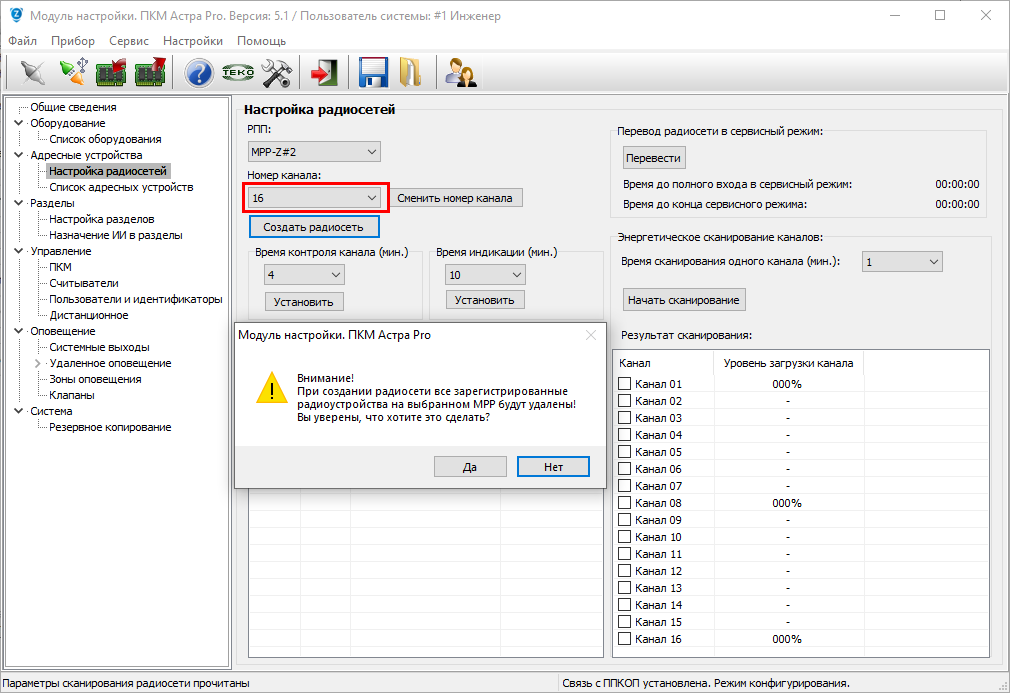 В заводских настройках приборов Астра-8945 Рго и Астра-Z РР, имеющих встроенный радио модуль МРР-Z, радиосеть уже создана на 11 канале и в общем случае создавать радиосеть дополнительно необходимости нет.