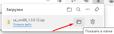 3. Открыть скачанный архив через иконку загрузки в правом верхнем углу браузера.