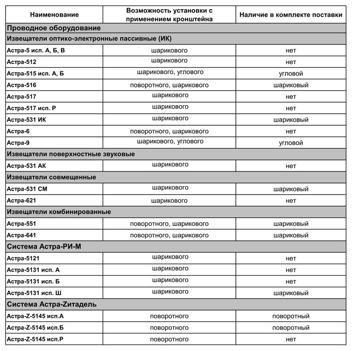 Кронштейн идет в комплекте с датчиками: Астра-531 исп. ИК, СМ, Астра-516, Астра-551, Астра-5131 исп.Ш