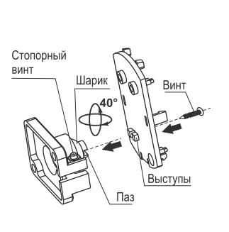 Кронштейн предназначен для установки извещателей Астра на стене. Обеспечивает поворот извещателя в горизонтальной и вертикальной плоскостях на 40°