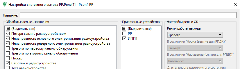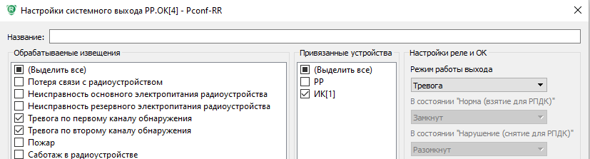 Выход "Неисправность" (Relay1) программируется в режим работы "Тревога"