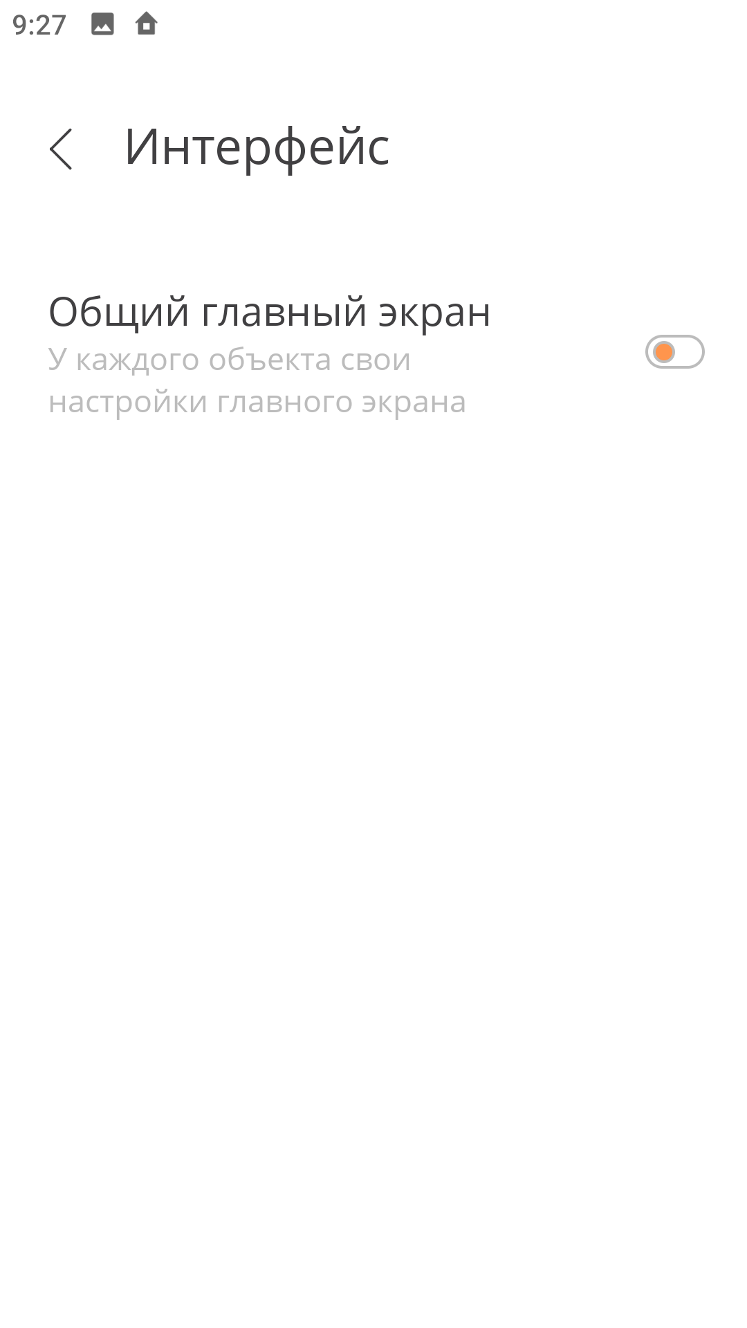 При отключенной функции объединения у каждого объекта имеются свои настройки (виджеты) главного экрана, количество виджетов каждого экрана не более 6. Примерный интерфейс главного экрана: