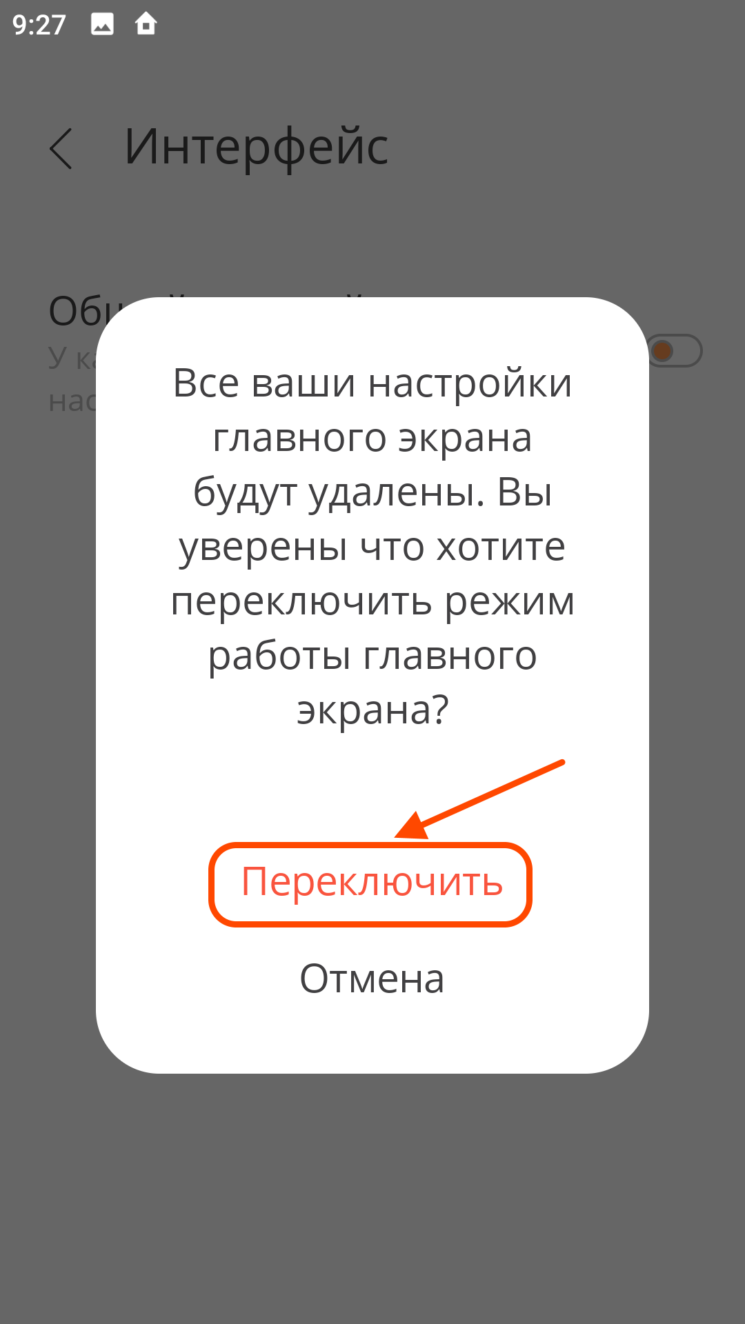 После переключения режима отображения главного экрана все настройки виджетов будут сброшены и потребуют новых настроек, даже после обратного переключения.