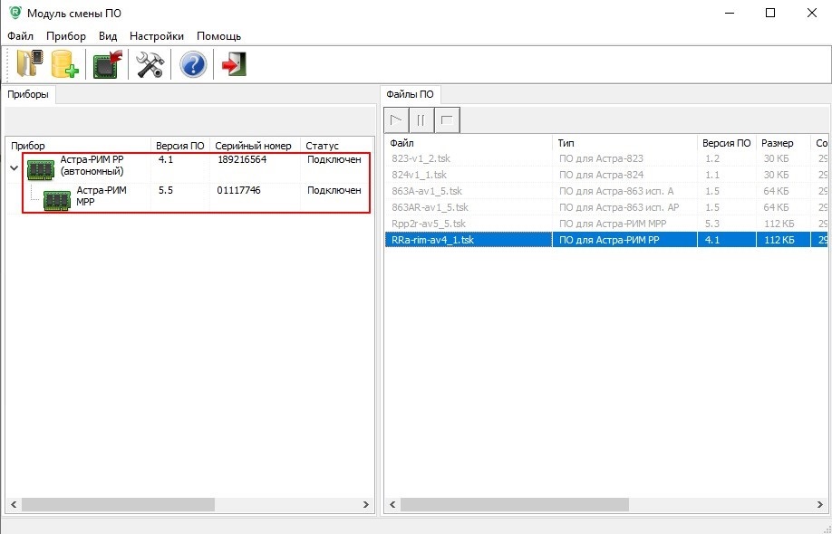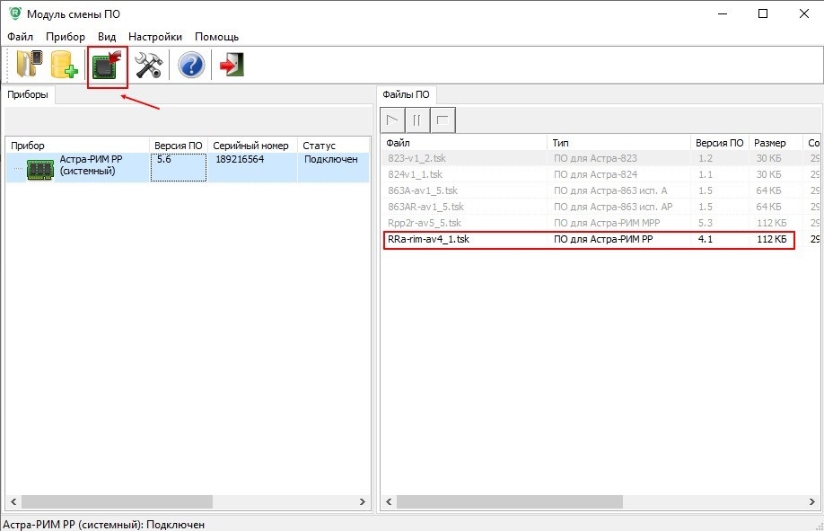 Устройство определится как Астра-РИМ РР (системный) – версия ПО 5.6