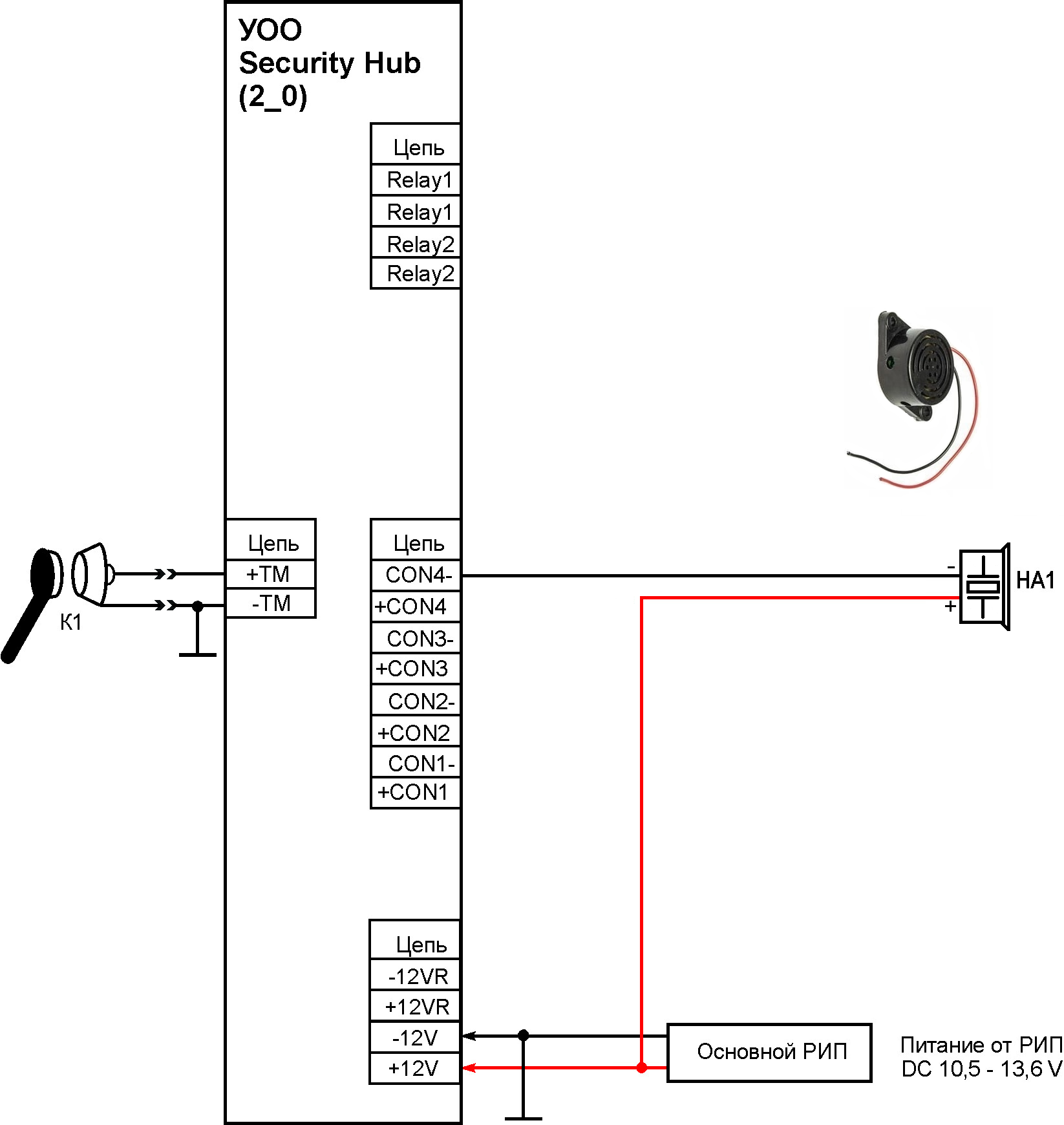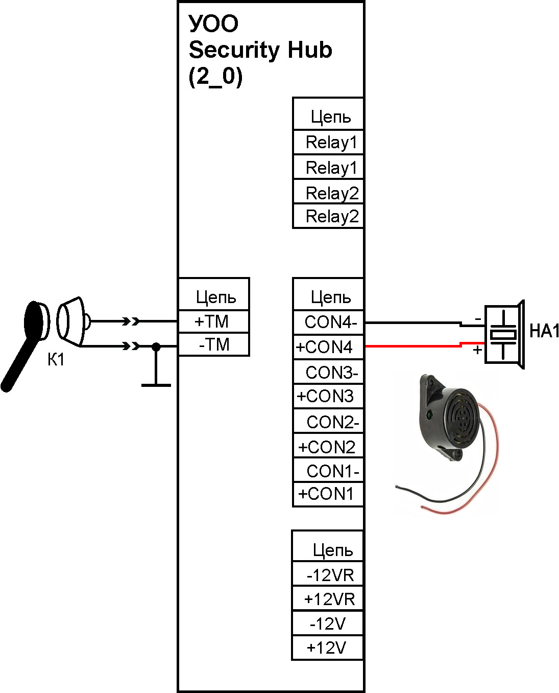 Подключение внешнего сигнализатора задержки и постановки/снятия на примере SFM-27