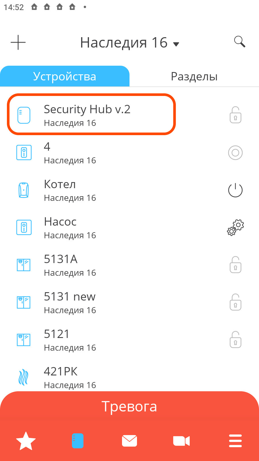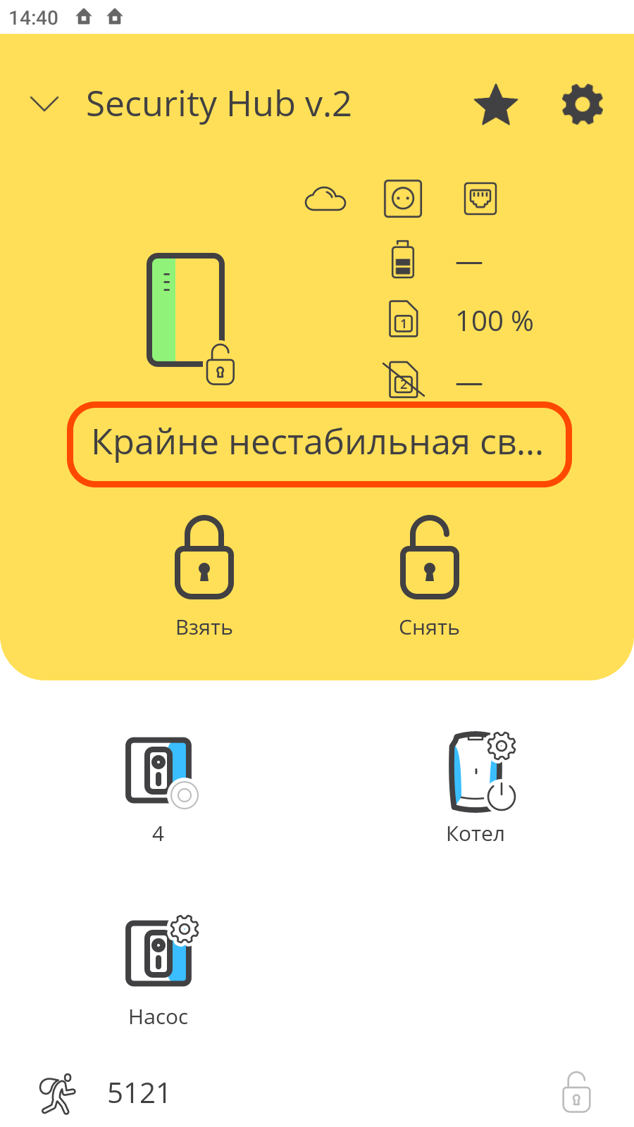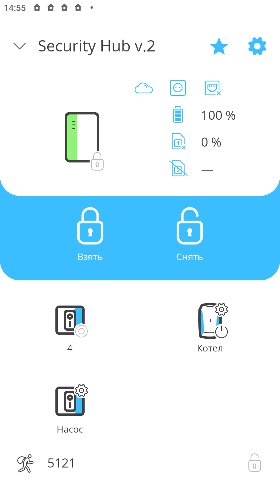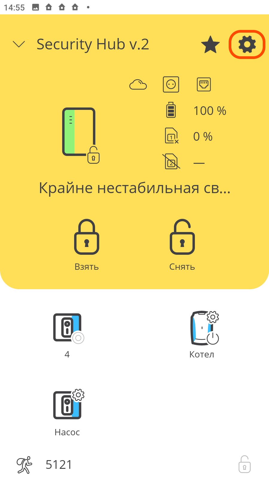 Убедитесь что контроллер снят с охраны и нажмите на "шестеренку" |