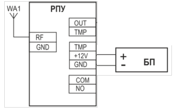 6. Нажать кнопку на зарегистрированном РПД. На РПУ загорится красный индикатор Контакты реле COM, NO разомкнутся.