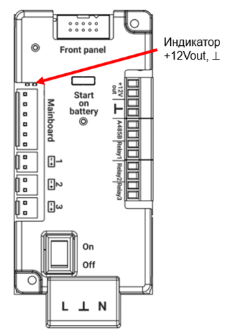Индикатор наличия питания на выходах +12Vout, ^